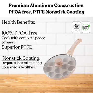 Enjoy soft, golden appams every time with the Biscoff Appam Patra, available in 4-cavity large and 7-cavity mini variants. With its superior non-stick coating, it ensures smooth food release and even heating, allowing you to cook multiple appams at once. Elegant, efficient, and easy to maintain, it’s a must-have for traditional and modern kitchens alike.