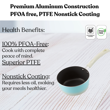 Add sophistication and functionality to your kitchen with the Santorini Sauce Pan with Glass Lid. Crafted from premium-quality material and coated with a superior non-stick layer, this pan ensures even heat distribution for perfect results every time. Its calming Santorini blue finish and soft-touch handle bring elegance and comfort to your cooking experience. Ideal for preparing sauces, soups, tea, or gravies — the Santorini Sauce Pan is designed to make everyday cooking effortless and refined.