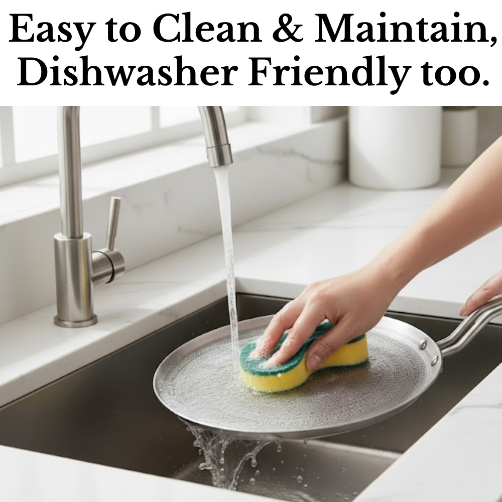 Tri-ply construction ensures even heating for perfect, evenly cooked dosas.