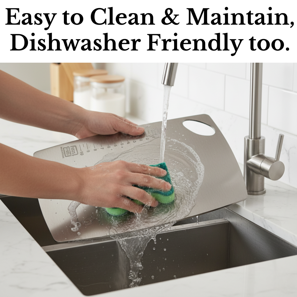 Sleek Pro Stainless Steel Boards deliver hygiene, strength and a modern look — perfect for every home cook.