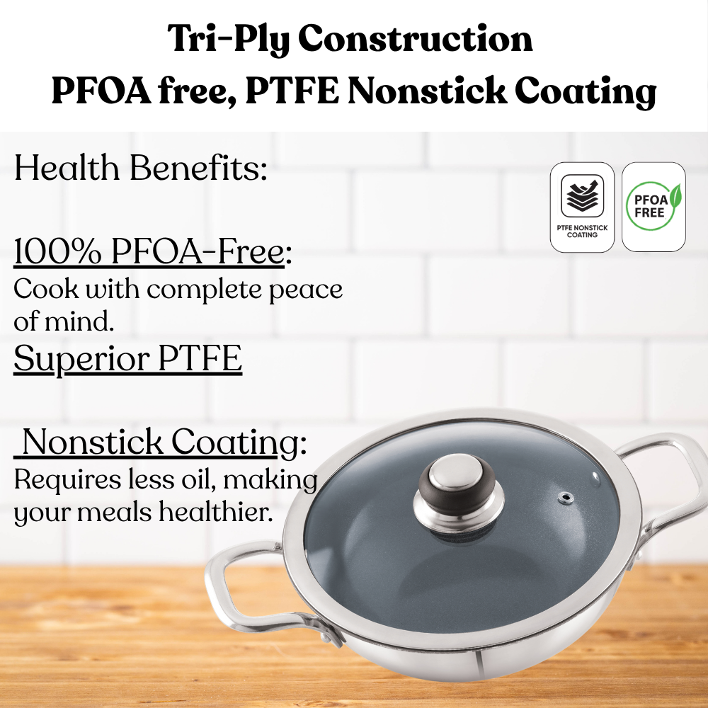 The TriCera Kadhai with Glass Lid turns everyday cooking into a pure and powerful experience — where performance meets safety.