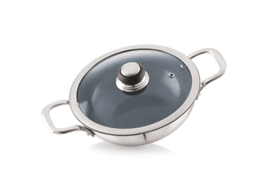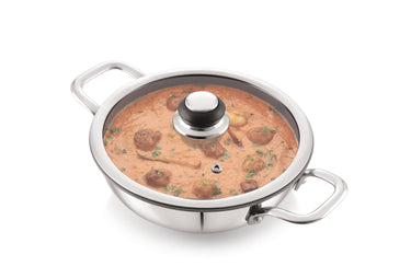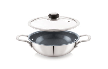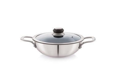 Triply Kadhai with SS Wire handle Induction Glass Lid - TriCera Collection