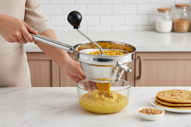 અંજલિના પુરણ મેકર વડે તમારા રસોઈના અનુભવને ઝડપી અને સરળ બનાવો. પરંપરાગત પુરણને સરળતાથી તૈયાર કરવા માટે રચાયેલ, આ ઉચ્ચ-ગુણવત્તાવાળા રસોડું સાધન તમને સમય બચાવવામાં મદદ કરે છે અને સાથે સાથે સતત પરિણામો પ્રાપ્ત કરે છે. તમે પુરણ પોલી બનાવી રહ્યા હોવ કે અન્ય સ્ટફ્ડ ભારતીય સ્વાદિષ્ટ વાનગીઓ, પુરણ મેકર તમને પૂરણના સંપૂર્ણ ભાગથી કણક સરળતાથી ભરવાની મંજૂરી આપે છે. તેની ટકાઉ, કાટ-પ્રતિરોધક ડિઝાઇન લાંબા સમય સુધી ચાલતી કામગીરીની ખાતરી આપે છે, જે તેને તહેવારોની ઋતુઓ અને રોજિંદા રસોઈ બંને માટે તમારા રસોડામાં એક આવશ્યક ઉમેરો બનાવે છે.