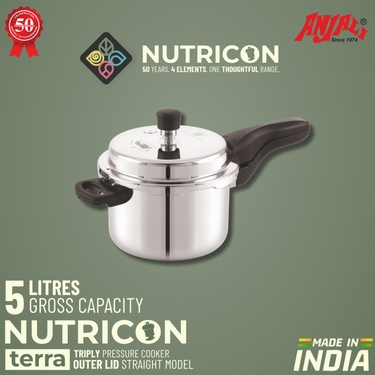The Terra Straight Induction Pressure Cooker (Outer Lid) is built using premium Triply (3-Layer) Stainless Steel Construction, offering exceptional durability, faster heating, and superior cooking performance. Its straight-wall body maximizes cooking capacity, making it ideal for everyday use across a wide range of Indian dishes. The triply induction-compatible base ensures rapid, even heating with enhanced fuel efficiency. Combined with a convenient outer-lid mechanism, ergonomic design, and advanced safety features, this cooker is a reliable and high-performing addition to modern kitchens.