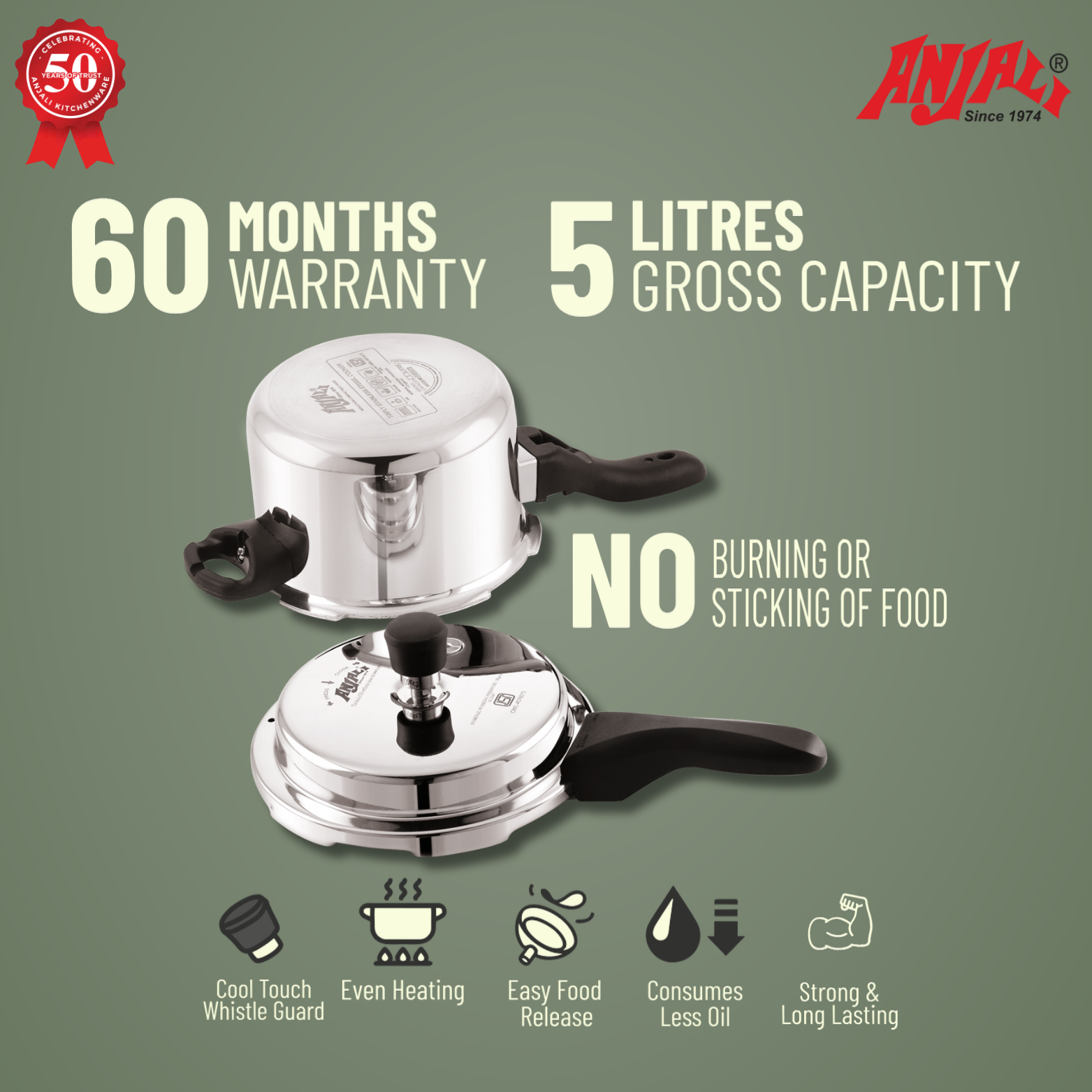 Triply metal design requires minimal oil, encouraging healthier cooking without compromising flavour.