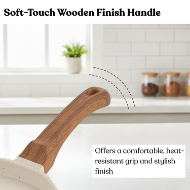 Soft-Touch Wooden Finish Handle: Offers a comfortable, heat-resistant grip and stylish finish.