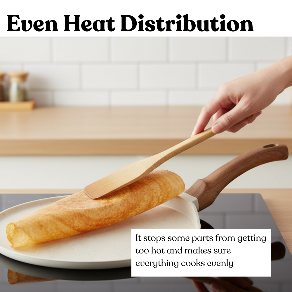 Even Heat Distribution: Prevents hotspots and ensures uniform cooking.