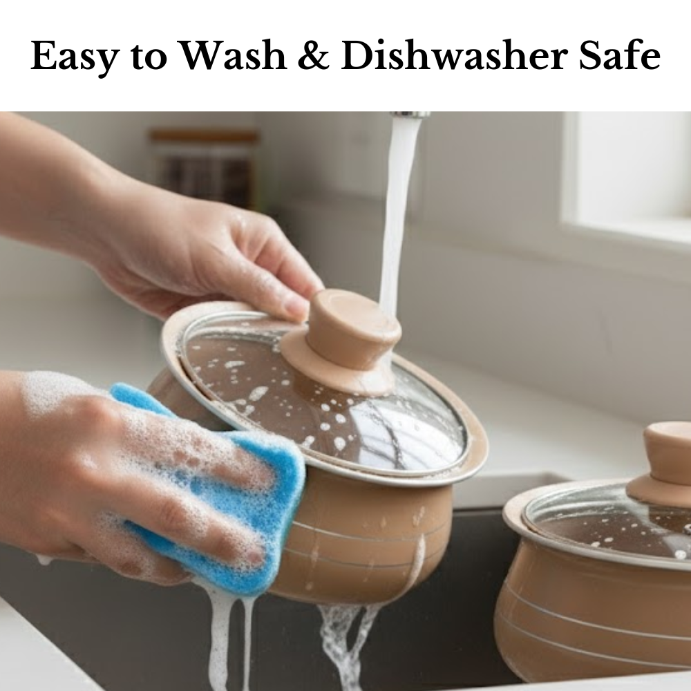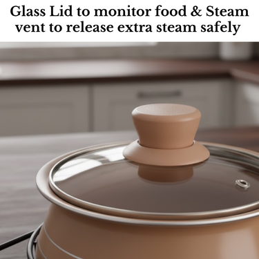The Mocha Aura Nonstick Handi Set blends premium looks with practical performance—perfect for cooking, serving and impressing at the same time. Beautiful on the stove, elegant on the table, and effortless in the kitchen.