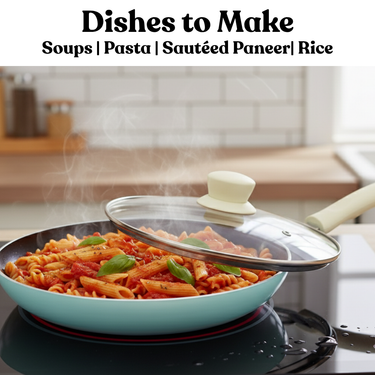 The Santorini Taper Pan with Glass Lid embodies everyday sophistication — delivering beauty, comfort, and flawless cooking performance.