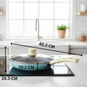 Redefine versatile cooking with the Santorini Taper Pan with Glass Lid. Designed for everyday convenience and beauty, it ensures even heating for soups, sauces, and one-pot meals. The superior non-stick coating allows healthier cooking with minimal oil, while the tempered glass lid locks in moisture and flavor. With its elegant blue finish and soft-touch handles, it adds sophistication and performance to your modern kitchen.