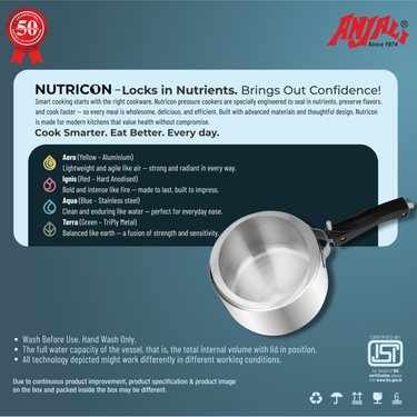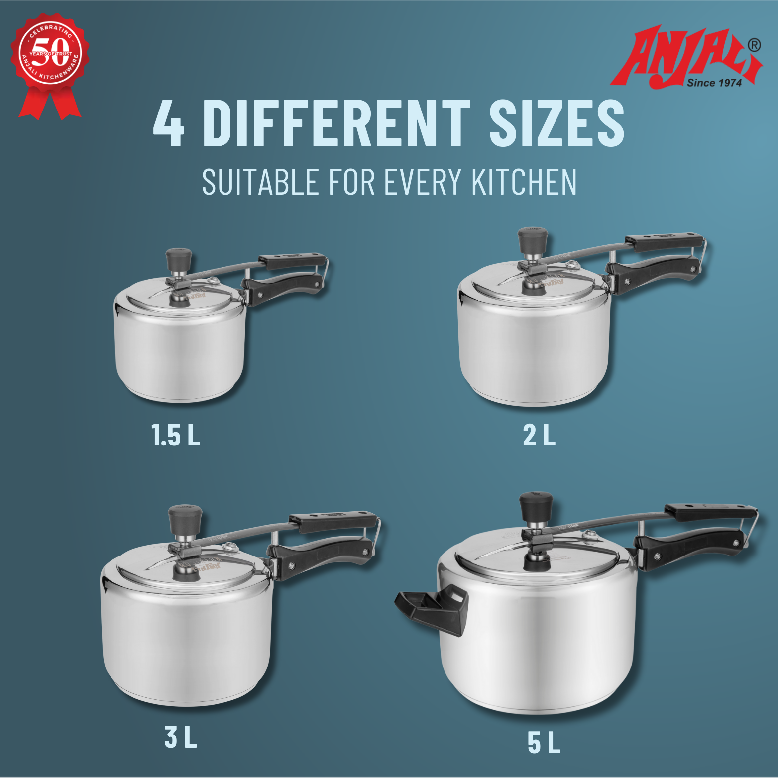 The Anjali Aqua Stainless Steel Inner Lid Pressure Cooker is designed for efficiency, reliability, and long-term durability. Crafted from high-quality stainless steel, it ensures consistent performance for everyday cooking needs. The inner-lid design provides enhanced pressure retention, while its induction-friendly base makes it suitable for modern kitchens.