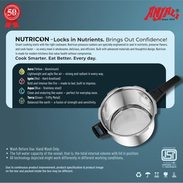 The Aqua Stainless Steel Pressure Cooker is suitable for cooking rice, dals, vegetables, gravies, and a variety of everyday Indian dishes. It is available in multiple capacities to meet the needs of individuals, small families, and larger households.