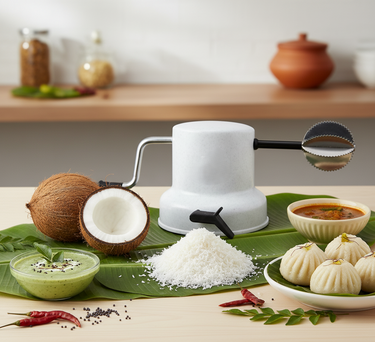 Add the Anjali Coconut Scraper – Padmini Stainless Steel Vacuum Base (White) to your kitchen collection and enjoy quick, precise, and effortless coconut grating. With its durable design and bonus juicer attachment, this tool is a must-have for every home cook or professional chef.