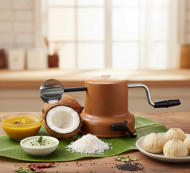 Upgrade your kitchen with the Anjali Coconut Scraper – Premier Stainless Steel Vacuum Base, the perfect tool for quick, safe, and efficient coconut preparation every time
