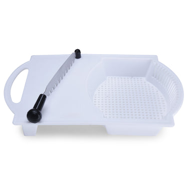 2-in-1 Design: Combines a cutting board with an integrated washing tray for seamless food prep.